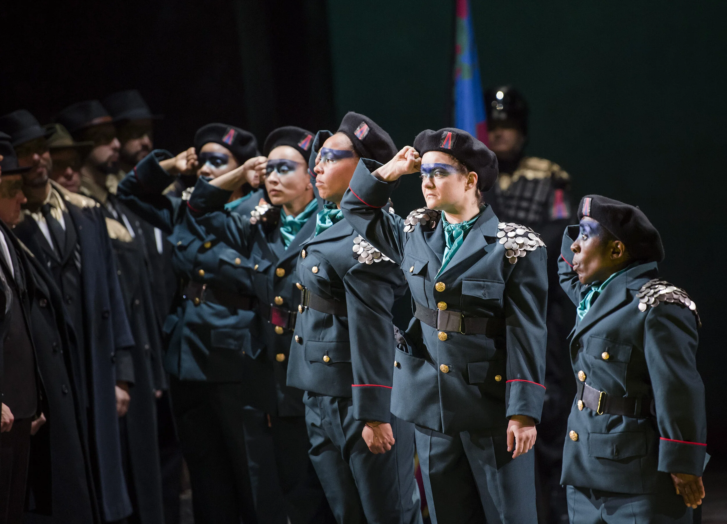 Keri-Lynn Wilson conducted Verdi’s score which contrasted swaggering military marches with tender lyricism. Sharing the title role were two sopranos – Latonia Moore and Morenike Fadayomi – both of whom were making their ENO debuts.